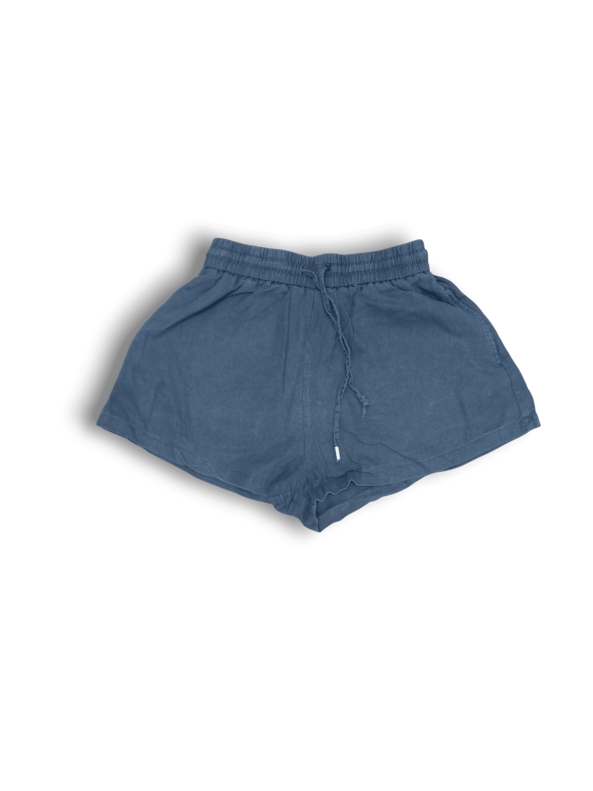 Elastičen pas z vrvico omogoča prilagodljivo prileganje, material pa je lahek in prijeten za poletje.